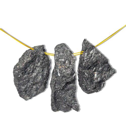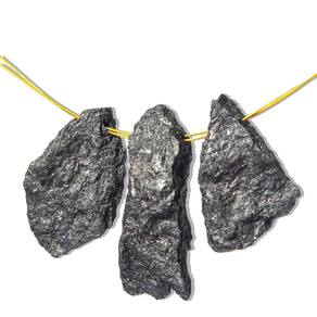 Nome da Pedra: Quartzo Preto. Cor: Preto intenso (imagens ilustrativas, podem haver variações naturais). Corte: Bruto, apenas lavado e com furo vazado. Claridade: Opaco, sem transparência. Medidas: De 20 a 30mm (possiveis variações conforme o lote). Peso Total: Aproximadamente 30g. Origem: 100% natural, extraído de garimpos no Brasil.
