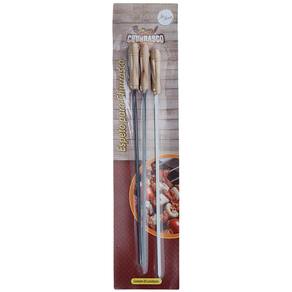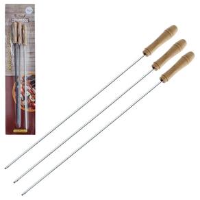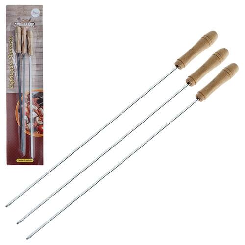 Espeto Para Churrasco Com 3 40 Cm Acessório perfeito para quem Gosta de um churrasco.Os espetos são feitos em metal, um Material resistente e fácil de limpar. Além disso, o produto possui cabo em Madeira, o que minimiza os riscos de queimaduras e garante e sua segurança.Um super kit com 3 espetos pra você Fazer seus churrascos com qualidade e praticidade para você desfrutar de um Momento de lazer com amigos e familiares.Especificações: - Dimensões Aproximadamente da Embalagem: 53 x 12.5 x 1.5 cm- Peso: 0.138kg - Marca: Zein Importadora - Certificado de Segurança: INMETRO- Material/ Composição: Metal/Madeira