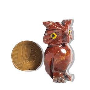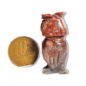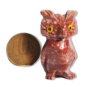 Escultura de Coruja em Pedra Natural de Dolomita Vermelha - Uma Elegância que Transmite Sabedoria Adquira agora uma escultura única e elegante de coruja em pedra natural de dolomita vermelha, a escolha perfeita para elevar a decoração de qualquer ambiente. Com uma estética refinada e simbólica, esta peça não apenas enriquece seu espaço, mas também carrega o significado de sabedoria, mistério e inteligência, tornando-se um presente ideal para quem aprecia arte e decoração. Características da Escultura: Material: Pedra Natural de Dolomita Cor: Vermelha vibrante, que traz vida e cor à sua decoração. Corte: Lapidado manualmente por artesãos habilidosos, garantindo um acabamento exclusivo. Claridade: Denso, com brilho de verniz, proporcionando um toque suave ao contato. Dimensões Aproximadas: 4 x 2,2 cm, perfeita para ser exibida em mesas, prateleiras ou estantes. Peso Aproximado: 20 g, leve e fácil de acomodar em diferentes espaços. Origem: Cristais de Curvelo, reconhecidos pela qualidade de suas pedras. Por Que Escolher Esta Escultura? Simbolismo Poderoso: A coruja é um símbolo amplamente reconhecido de sabedoria e proteção, tornando-a uma adição significativa à sua decoração. Peça Única: A dolomita vermelha apresenta variações em tonalidade e grafismo, garantindo que cada escultura seja verdadeiramente única. Versatilidade: Ideal para decoração de casas, escritórios ou como um presente marcante e significativo. Atenção: Por ser uma peça feita de pedra natural, podem ocorrer variações em suas tonalidades e grafismos. Pequenas inclusões que podem se assemelhar a fissuras são características normais de minerais autênticos de garimpo. A escultura recebe hidratação com óleo mineral para preservar sua beleza. Não perca a oportunidade de enriquecer sua decoração com esta escultura de coruja em dolomita vermelha! Peça agora mesmo e adicione um toque de elegância e significado ao seu lar! Marca: CristaisdeCurvelo