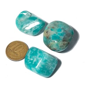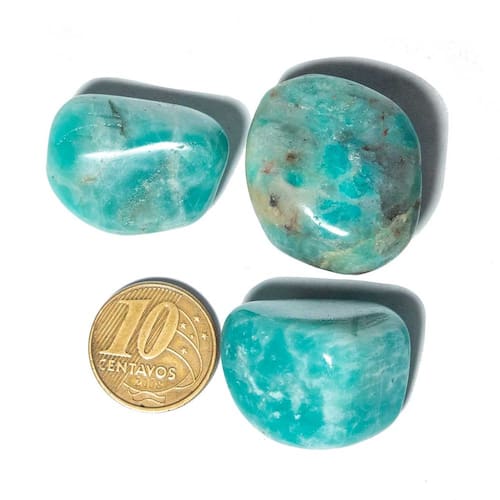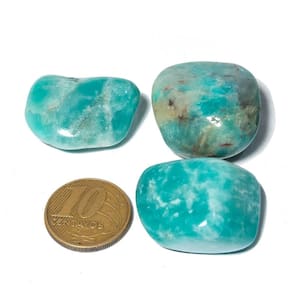 3 Unidades de Amazonita Verde Rolada - Pedra Natural para Artesanato e Uso Esotérico Conjunto com 3 unidades de Amazonita Verde em formato rolado, ideal para montagem de colares, pulseiras, mandalas, uso em trabalhos esotéricos ou para colecionadores. Pedra natural extraída de garimpo, pertencente à família dos feldspatos. Propriedades EsotéricasA Amazonita é conhecida por acalmar o sistema nervoso, trazer alegria e estimular a criatividade. É indicada para pessoas introspectivas, ajudando na expressão pessoal e na comunicação. Também auxilia em momentos de tensão, promovendo bem-estar emocional. Detalhes do Produto