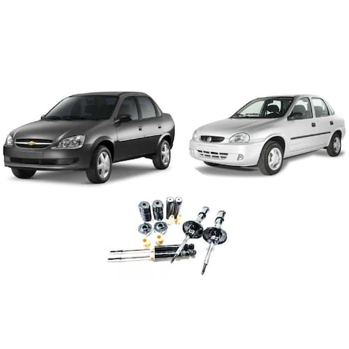Conteúdo da embalagem: 04 Amortecedores + 04 Kits Batentes Corsa Sedan Dianteiro/Traseiro (1995 Até 2001)