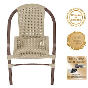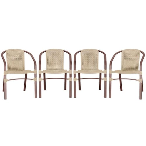 04 Cadeira Floripa Aluminio Trama - Bege Médio
