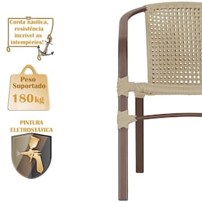 Produto conhecido como: Cadeira Florida, Cadeira de alumínio com corda náutica, Cadeira com pintura eletrostática, Cadeira para área externa, Cadeira resistente ao tempo, Cadeira moderna para varanda, Cadeira de design contemporâneo, Cadeira para jardim ou piscina