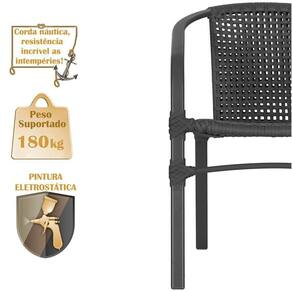 Composto por cadeiras de aluminio tramadas em corda nautica e uma elegante mesa com tampo ro, esse conjunto une sofisticacao e resistencia em cada detalhe.