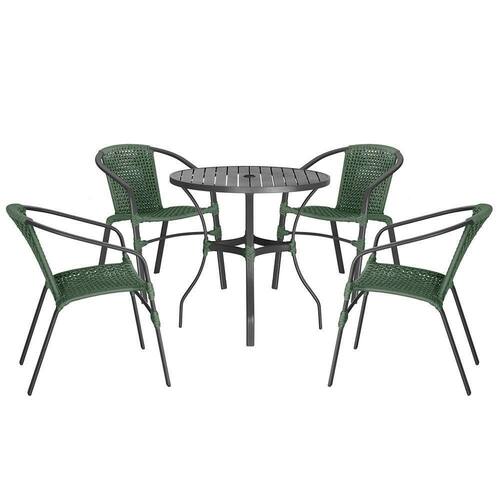04 Cadeiras Floripa E Mesa Roma 100cm Preta Trama Verde
