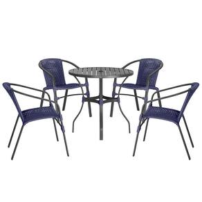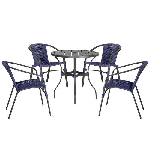 04 Cadeiras Floripa E Mesa Roma 80cm Preta Trama Azul