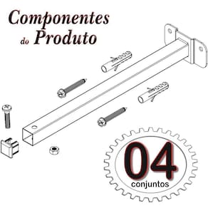 (04 CONJUNTOS) DE SUPORTE PARA REFLETOR - BASE PAREDE OU TETO - BRAÇO com 80 cm