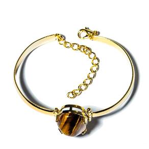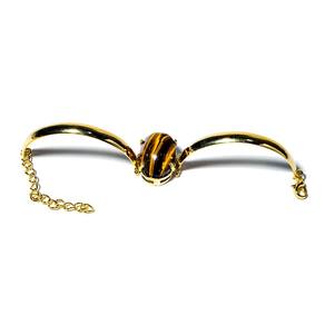 05 Bracelete Olho de Tigre Natural Mini Cabochão Dourado