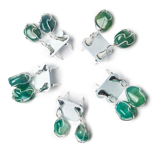 Feito com carinho, este brinco une o charme do Ágata Verde rolado e polido com um design rústico-chique: um delicado cesto amarradinho artesanal, montado manualmente. Um acessório com alma, perfeito para quem ama estilo com boas vibrações. A estrutura recebe um Prateado sobre metal niquelado, trazendo um brilho suave e elegante que realça a beleza da pedra. Detalhes da Peça