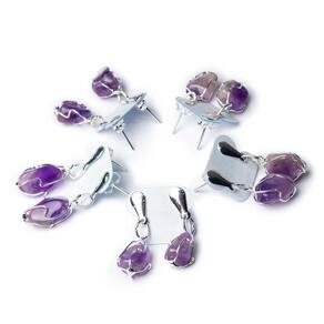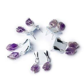 Este brinco combina o brilho sereno da Ametista rolada e polida com um design chique e artesanal: um delicado cesto amarradinho, montado manualmente. Um acessório com aura mística e elegante, ideal para quem busca estilo com propósito espiritual e boas vibrações. A base metálica recebe acabamento prateado sobre metal niquelado, criando um contraste sofisticado que valoriza os tons lilases profundos e translúcidos da pedra. Detalhes da Peça