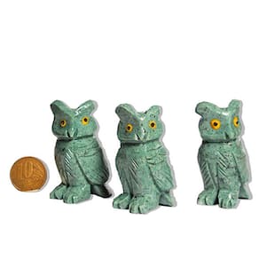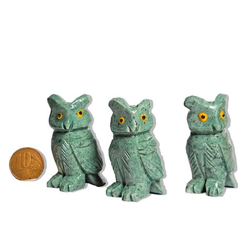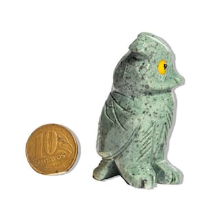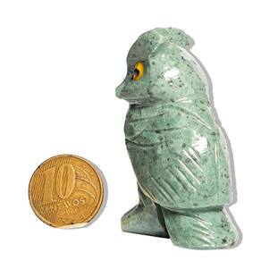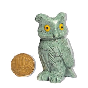 Escultura de Coruja em Pedra Dolomita Verde - Artesanato Manual Exclusivo Transforme seu ambiente com uma escultura de coruja em pedra dolomita verde, uma peça única e cheia de significado. Esculpida manualmente, essa obra de arte é perfeita para decoração, combinando o charme da dolomita com a simbologia da coruja, que representa sabedoria, mistério e inteligência. Por que escolher esta escultura? Pedra: Dolomita natural, de tom verde elegante. Dimensões: Aproximadamente 5,5 x 2 x 3 cm. Peso: Aproximadamente 50g. Acabamento: Brilho de verniz, proporcionando uma textura suave ao toque. Corte: Artesanato manual com lapidação detalhada, criando uma peça exclusiva. Origem: Extraída e lapidada em Curvelo, MG. Cada escultura é única, com variações naturais de cor e grafismos, além de possíveis pequenas inclusões que reforçam a autenticidade da peça. Essas características tornam cada coruja um exemplar exclusivo, com o charme rústico da dolomita. Garanta já sua escultura de coruja em pedra dolomita verde e adicione um toque de sofisticação e simbolismo à sua decoração! Perfeita também como presente especial, unindo arte e natureza em uma única peça! Marca: CristaisdeCurvelo