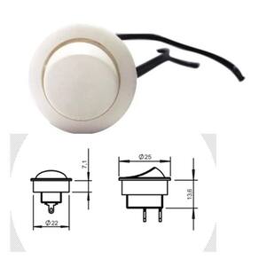 Amperagem: 2A Corrente: 250V Cor: Branco Composição: Materiais plásticos isolantes (termoplásticos de engenharia) e ligas metálicas condutoras Diâmetro do furo: 22mm Altura embutida: 13,6mm Diâmetro externo: 25mm Comprimento do cabo: 150mm