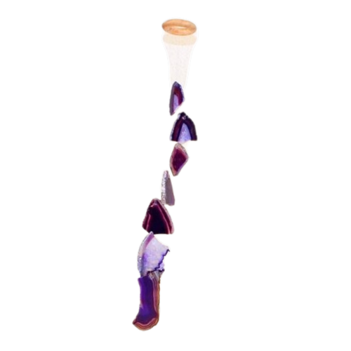 Mensageiro dos Ventos de Ágata Lilás – Harmonia e Paz com Som Suave e Natural   Eleve a energia do seu ambiente com o Mensageiro dos Ventos de Ágata Lilás, uma peça que une a beleza natural das pedras de ágata lilás com o som suave produzido pelo vento. Ideal para quem busca paz, tranquilidade e um toque de elegância, este mensageiro dos ventos é perfeito para varandas, sacadas e entradas. A cor lilás das pedras reflete equilíbrio e serenidade, enquanto o som harmonioso afasta as energias negativas, promovendo bem-estar.   Características do Produto: Pedras: Ágata Lilás Natural Cor: Lilás (foto ilustrativa) Corte: Chapas polidas em ambos os lados Claridade: Translúcido Medidas das Pedras: Variam de 4,5 a 9 cm Peso Total: Aproximadamente 200g Origem: Chapada Diamantina, Brasil Benefícios e Usos: O Mensageiro dos Ventos de Ágata Lilás é mais do que uma simples peça decorativa. Utilizado em práticas como o Feng Shui, ele ajuda a purificar e renovar a energia do ambiente. Quando o vento passa pelas chapas de ágata, o som suave emitido promove relaxamento e harmonia, ideal para locais onde se busca serenidade e equilíbrio. Seu design elegante também faz dele uma escolha perfeita para decorar entradas, varandas e jardins.   Atraia boas energias e afaste as negativas Som suave que acalma e promove o bem-estar Ideal para ambientes de meditação, descanso e relaxamento Perfeito para decorar varandas, sacadas e espaços de convivência Detalhes Importantes: Cada chapa de ágata lilás é polida manualmente e cortada de forma a preservar sua beleza natural. Pequenas variações de forma e tamanho fazem parte da autenticidade e exclusividade do produto.   Traga a harmonia das pedras naturais para o seu lar com o Mensageiro dos Ventos de Ágata Lilás e transforme seu espaço em um santuário de paz e equilíbrio.