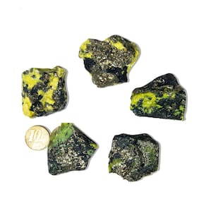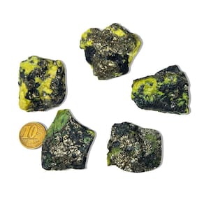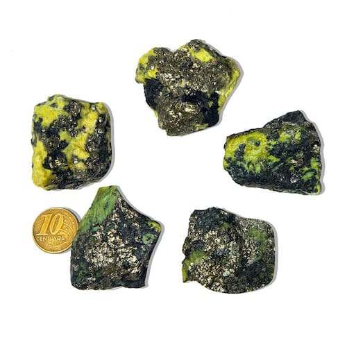Adquira uma linda Serpentinita Verde Incrustada com Pirita , em formato bruto, perfeito para quem está começando sua coleção de minerais ou já é um apaixonado por pedras naturais. Essas pedras também são muito utilizadas em trabalhos artesanais como colares, pingentes, chaveiros ou peças decorativas com significados espirituais e energéticos. Detalhes do Produto:\nPedras: Serpentinita com inclusão de Pirita (variedades naturais de jade)\nCor: Verde com veios ou rajadas mais escuras\nFormato: Bruto\nTamanho Médio: 30 a 50mm\nPeso Aproximadamente: 50 a 75g\nPeso Aproximadamente do Kit: 250 a 375g\nObservação Importante: As imagens são ilustrativas. Por serem pedras naturais, podem apresentar variações de cor, formato e pequenas inclusões — características que tornam cada peça única e autêntica. A Serpentinita são reconhecidas por sua beleza duradoura e energia protetora. Tradicionalmente associadas à espiritualidade, equilíbrio e bem-estar, são muito valorizadas em diversas culturas ao redor do mundo. Produto ideal para:\nColecionadores de minerais\nUso em práticas esotéricas e terapias\nCriação de joias e artesanato com significado\nPresentes simbólicos e personalizados\nGaranta já o seu par de pedras naturais e leve para casa um pedacinho da energia da Terra! Marca: CristaisdeCurvelo