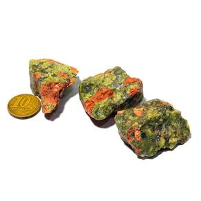 A Unakita é uma pedra semipreciosa de tonalidades verdes e rosas, composta principalmente por feldspato, quartzo e epidoto. É valorizada tanto pela beleza como pelas propriedades energéticas de bem-estar e equilíbrio. Foto ilustrativa – envio conforme disponibilidade em estoque Nome: UnakitaCor: Verde e rosa, com padrão marmorizado.Tipo de corte: Bruto natural (foto mostra as pedras lavadas com água)Textura/Claridade: Opaca – sem transparência. Quando lapidada, adquire superfície brilhanteTamanho aproximado: 20 a 50 mmPeso por pedra: Entre 25 a 50 g (média)Origem: México, África do Sul, China, Brasil. As pedras serão enviadas de acordo com o estoque disponível. Por se tratar de um produto natural e bruto, variações de forma, cor e tamanho são esperadas. Ideal para colecionadores, revendedores, artesãos, terapeutas holísticos ou para uso em decoração e energização de ambientes. Marca: CristaisdeCurvelo