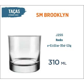 Copo Brooklyn 310ml - Whisky, Drink, Água, Refrigerante, Multiuso, Casual, Vodka, Pinga, Cachaça, Destilado, Tequila, Batida, Sobremesa