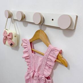 Dimensão do cabideiro: Base parede: 45cm largura X 5cm altura X 1,5cm profundidade; Gancho: 6cm largura X 5cm altura X 1,5cm profundidade; Suporte para gancho: 3cm largura X 1,5cm profundidade; Material: MDF Melamínico 15 mm com bordas cru (sem pintura).