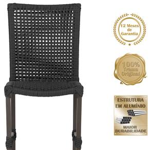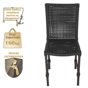 1 Cadeira de Jantar Cannes de Alumínio com Pintura Marrom e Trama Tela de Corda Náutica - Preto