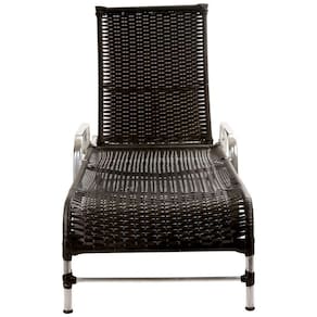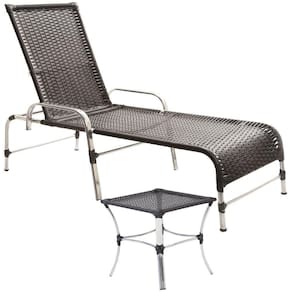 1 Cadeira Espreguiçadeira Catar e Mesa em Alumínio - Piscina, Jardim, Área - Trama - Preto