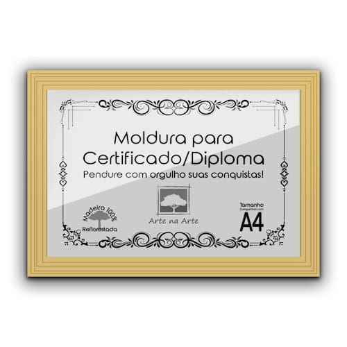 1 Moldura de Certificado/Diploma A4 Com Tela de Acetato e Fundo MDF