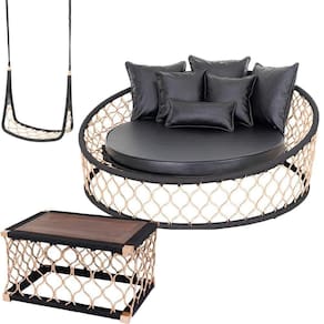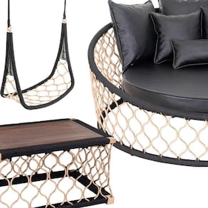 Chaise, Balanço Suspenso e Mesa de centro com tampo de madeira - TRAMA