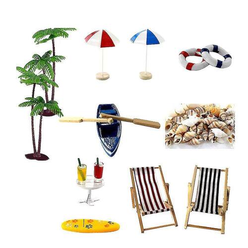 Description_x000D__x000D_This item é um conjunto de miniaturas de resina e ornamento de paisagem de resina criativa. O seu design de mini elementos de jardim torna-o adequado para micro paisagem. Para DIY uma fada como jardim da casa de bonecas por si só e torná-lo um bom presente para as crianças. Feito de material de resina durável para uso a longo prazo. Não é fácil decair como miniature._x000D__x000D_Features _x000D__x000D_ de madeira real- Cor: Como shown._x000D_- Material: Resin._x000D_- Tamanho: Cerca de 14 x 5 x 6 cm._x000D_- Tamanho do pacote: 20 x 15 x 10cm._x000D_- Conjunto inclui 18 estilos diferentes mini elementos de praia decoração casa de boneca accessories._x000D_- Item inclui 1 Pc guarda-sol vermelho, Guarda-sol azul, espreguiçadeira listrada azul, espreguiçadeira listrada vermelha, mesa redonda branca, copos de bebida, barco, boia de vida vermelha, boia de vida azul, prancha de surf amarela, 1 pá de par, 1 pacote de areia azul, 1 pacote de conchas, 2 pcs coqueiro (14cm) e 2 pcs dolphins._x000D_- Feito de resina sintética premium, durável para uso a longo prazo e não é fácil de deform._x000D_- Para DIY uma fada como praia de casa de bonecas por si só e torná-lo um bom presente para kids._x000D_- Acabamento fino fazê-lo não desaparecer facilmente. adereços de jardinagem, adequados com pequena jardinagem decorativa. Lista de embalagem1 x sol vermelho umbrella_x000D_1 x umbrella_x000D_1 de sol azul x chair_x000D_1 de salão listrado azul x chair_x000D_2 de salão listrado vermelho x _x000D_1 de coqueiro de 14cm x table_x000D_2 redonda branca x cups_x000D_1 de bebida x par de 1_x000D_1 de barco x pacote de _x000D_1 de remo x pacote de _x000D_1 de areia azul x Shells _x000D_1 x vida vermelha buoy_x000D_1 x vida azul buoy_x000D_1 x surfboard_x000D_2 amarelo x golfinhos