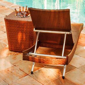 Sim, a estrutura pode ser molhada e utilizada em áreas abertas, expostas ao sol e chuva. A fibra sintética possui filtro UV, com isso o produto pode ficar tranquilamente exposto ao tempo sem que o mesmo danifique-o.