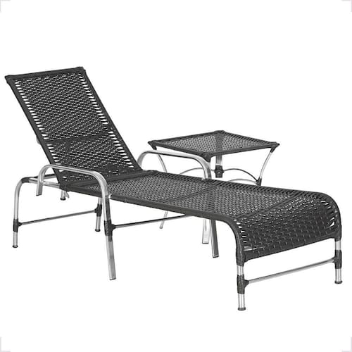 1 Espreguiçadeira Catar e 1 Mesa Garden Alumínio E Fibra Trama - Preto