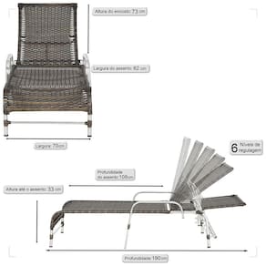 Produto conhecido como: Espreguicadeira reclinavel, Espreguicadeira em aluminio, Espreguicadeira com encosto ajustavel, Espreguicadeira para area externa, Espreguicadeira para piscina, Espreguicadeira resistente ao tempo, Espreguicadeira moderna, Espreguicadeira confortavel, Moveis para area externa, Moveis de aluminio para jardim, fibra sintetica para moveis, Espreguicadeira leve e duravel, Design sofisticado para areas externas, Decoracao para varanda e piscina, Espreguicadeira resistente ao sol e chuva