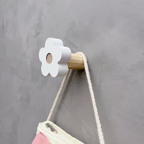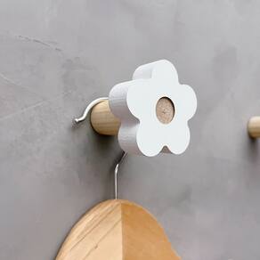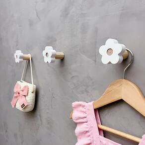 A face vai colada com super cola e acaba sendo apenas decorativa, pois é o suporte quem recebe o esforço, suportando até 5 Kg. Anúncio referênte à 1 unidade. Modelo: Flor Tamanho da face: 5,0cm X 5,0cm; Material: MDF laminado 15mm melamínico | borda pintada Cor: Rosa, Azul, Branco e Cinza