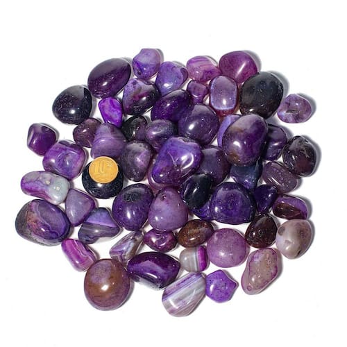 Descubra a elegância da Ágata Lilás, uma pedra natural de coloração tingida, extraída do garimpo no Sul do Brasil e lapidada em Cristais de Curvelo, MG. Cada unidade é cuidadosamente rolada em máquina, resultando em peças com brilho cristalizado e formato suave, semelhantes às pedras de rio. Características do Produto
