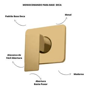 KIT Acompanha: 01 ALAVANCA SLIM MONOCOMADO 01 FIXA CANOPLA MONOCOMADO 01 CANOPLA MONOCOMADO 01 PARAFUSO ALLEN 02 ACABAMENTO VALENCIA DOURADO FOSCO TODO METAL