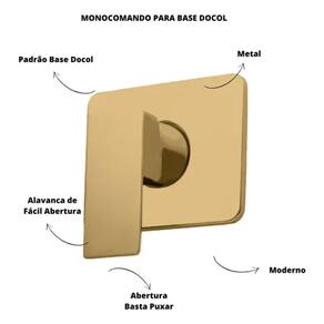 KIT Acompanha: 01 ALAVANCA SLIM MONOCOMADO 01 FIXA CANOPLA MONOCOMADO 01 CANOPLA MONOCOMADO 01 PARAFUSO ALLEN 02 ACABAMENTO AR4 DOURADO FOSCO TODO METAL