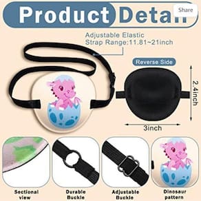 1 Oclusor Tampão Estrabismo Ambliopia Tapa Olho Pirata Óculo Modelo: DINO01 Sobre este item: 01 Unidade - Quantidade e padrões: 01 peça de tapa-olho de dinossauro com alça elástica em 6 padrões diferentes para escolher, com imagens de dinossauros clássicas e fofas, adoráveis e vívidos, cores frescas e dinossauros variados, designs delicados para você usar, substituir e compartilhar; - Adaptável ao desgaste: o tapa-olho ajustável de dinossauro adota elásticos e fivela de cinto, para que você possa ajustar o comprimento do cinto para se adequar à maioria das circunstâncias da cabeça de acordo com as necessidades reais, difícil de escorregar, adequado para adultos e crianças, remendo de esponja, dobrável e elástico, oferecendo experiências de uso confortáveis; - Confortável e reutilizável: os tapa-olhos de dinossauro para crianças adultas são feitos de poliéster e material de esponja, macio e elástico, suave e confortável de sentir, respirável o suficiente, não trará muita tensão ou carga para a cabeça ou os olhos, fácil de limpar e lave com água morna e sabão; - Por favor, não use máquina de lavar por causa de causar deformação; - Bons adereços para festas: o tapa-olho ajustável bonito não é apenas adequado para uso diário, mas também ideal para muitas ocasiões importantes, como dramatização, fotografia, carnavais, festas temáticas, bailes de máscaras, bailes, apresentações de palco e muito mais para combinar outras roupas e trajes; - Certamente, os tapa-olhos são adereços indispensáveis para festas de dinossauros; - Transporte simples: o tapa-olho de padrões de desenhos animados de dinossauros é adequado em tamanho, leve, fácil de armazenar, portátil para transportar, várias fotos, aparências de desenhos animados, fácil de ganhar a maioria das pessoas, especialmente favor e atenção das crianças, tornando os usuários mais atraentes e atraentes pegando. Estamos a disposição para quaisquer esclarecimentos que se fizerem necessários.