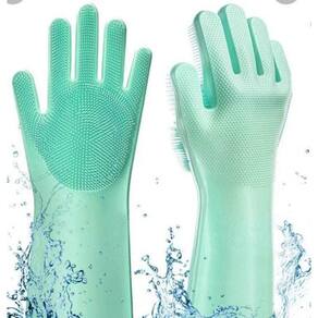 1 Par De Luvas Esponja Lava Louça De Silicone Produto: par de Luvas Esponja Lava Louça de Silicone Marca: Your Cor: Verde Claro Material: silicone Medidas: 13,5cm x 27cm x 1cm