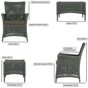 1 Poltrona e 1 Mesa Igapó em Alumínio Pintura Marrom Corda Náutica Estofado 13 - Verde