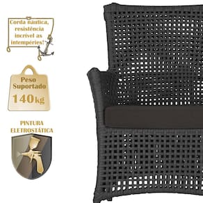 1 Poltrona e 1 Mesa Igapó em Alumínio Pintura Marrom Corda Náutica Estofado 9 - Preto