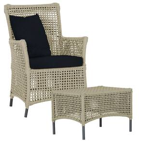 1 Poltrona e 1 Mesa Igapó em Alumínio Pintura Preta Corda Náutica Estofado 12 - Bege