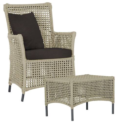 A corda náutica adiciona um toque de rusticidade moderna, enquanto o estofado impermeável garante que sua poltrona esteja sempre impecável, mesmo após uma chuva inesperada ou um acidente com líquidos.