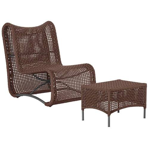 1 Poltrona E Mesa Texas Alumínio Preto Corda Náutica Trama Marrom
