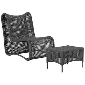 1 Poltrona E Mesa Texas Alumínio Preto Corda Náutica Trama Preto