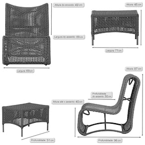 1 Poltrona e Mesa Texas em Alumínio Trama - Preto