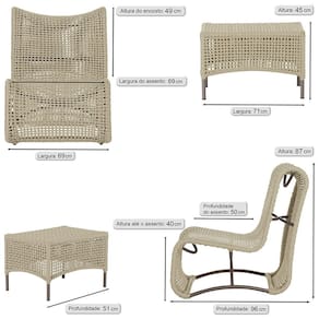 1 Poltrona e Mesa Texas em Alumínio Trama - Bege Médio