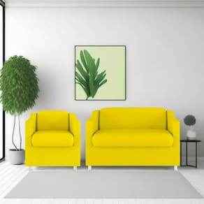 1 Poltrona e Namoradeira Decorativa Reforçada Suede Amarelo