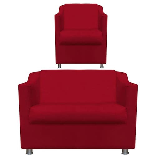 1 Poltrona e Namoradeira Decorativa Reforçada Suede Vermelho