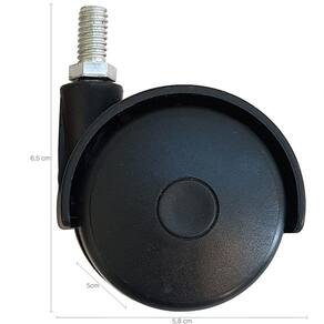 1 Rodizio Para Moveis Pe De Cama Box Rodinha Para Cama Peça Reposição Rodinha Giratória #Rodizios com Rosca 5/16 #Rodizio para Moveis #Pé para Cama Box Garantia: 90 Dias / Peso: 60g / Cor: Preto e Cinza / Ref: 79R5 Dimensões: 5,8cm (C) x 5cm (L) x 6,5cm (A) Cuidados: Não lavar com materiais abrasivos. *Obs: Para a fixação do rodizio, é necessário que o local possua bucha americana para rosca 5/16. Conteúdo: 1 Rodinha e 1 Chave de Boca. Material: - Haste de Aço BTC Zincado Branco; - Polipropileno Injetado. O rodizio para moveis é indicado para ser rosqueado diretamente em camas box ou móveis que possuem o encaixe para a rosca 5/16, suportando até 45Kg. Permitindo o movimento da cama com maior facilidade, seja para facilitar na limpeza ou movimentar dentro do ambiente.