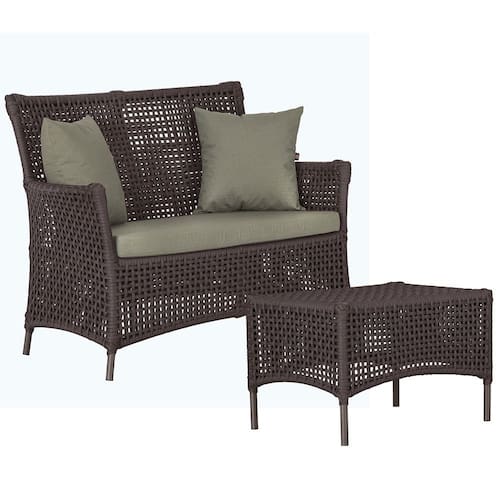 1 Sofá Área e Mesa Igapó Alumínio Pintura Marrom Corda Náutica Estofado Impermeável Almofada 8 Trama