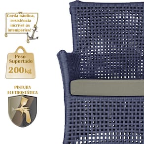 1 Sofá Área e Mesa Igapó Alumínio Pintura Marrom Corda Náutica Estofado Impermeável Almofada 8 Trama - Azul