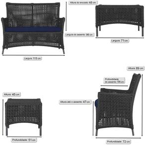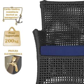 1 Sofá Área e Mesa Igapó Alumínio Pintura Preta Corda Náutica Estofado Impermeável Almofada 10 Trama - Preto