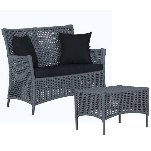 1 Sofá Área e Mesa Igapó Alumínio Pintura Preta Corda Náutica Estofado Impermeável Almofada 12 Trama - Prata